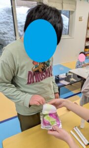 「ふわふわのアイスにする🍧」とジグザグに切っている子もいました🥰