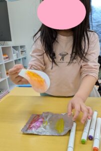 子どもたちは「わぁ~きれい✨」「ちゃんと色付いた!!」と大喜びです!