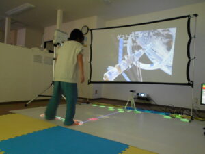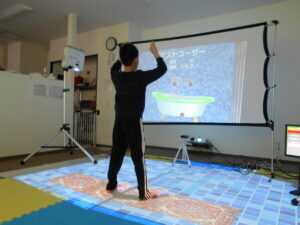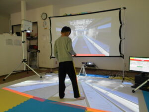 トレーニングではプロジェクションマッピングを応用したゲーム形式で進めています。