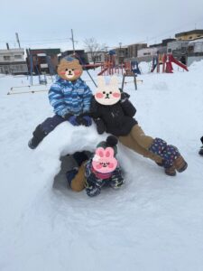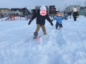それと、ようやく雪が積もったので『平和通り公園』で思いっ切り雪遊びもしました!