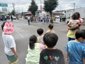 別の日では、偶然にも近くの白石神社のお祭りあったようで、神輿がげんきまるの前を通りました。