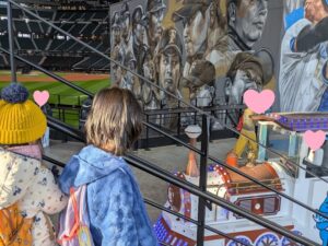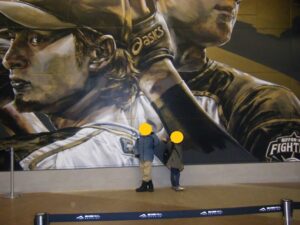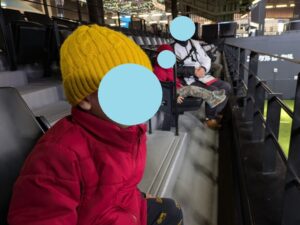 エスコンフィールドの建物が見え、「わー」っと子どもたちも少し興奮気味です!
