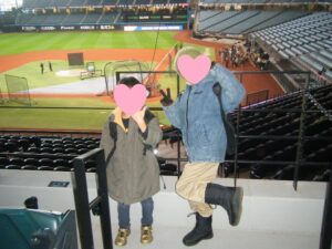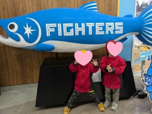 エスコンフィールドの建物が見え、「わー」っと子どもたちも少し興奮気味です!
