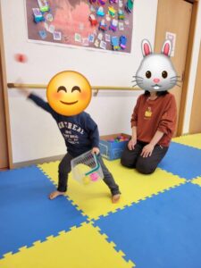 その後はバッグに豆(銀チョコ)をいれて的に向かって豆まき練習!!鬼は~外!福は~内!