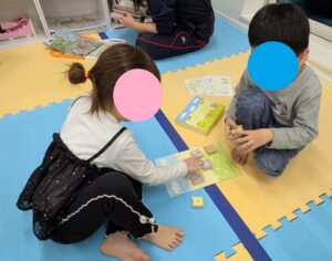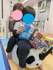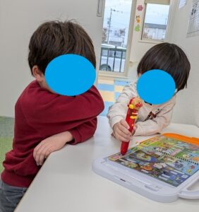 学校や保育園、幼稚園を頑張った後のお子様でも、椅子に座りゆっくりと落ち着いた時間を過ごすことで 体を休めることができます✨カッコいいポーズで本を読んでいる子も居ましたよ😊 アンパンマンのタッチ絵本を使って言葉の練習をしながらお友達とコミュニケーションをとって楽しんでいる子もいます!