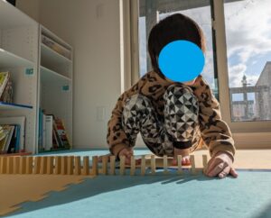 ドミノを真っ直ぐにたくさん並べて、一気に倒したり・・・