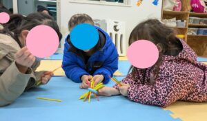 棒倒しをして「うわ~おしいっ~!」と会話を楽しみながらお友達同士でルールを確認して遊びます🥰